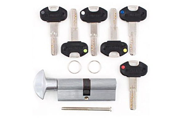 Двері обладнані наступними замками: Верхнім сувальдним замком Securemme 2019 італійського виробництва з марганцевою пластиною в області отвору для ключа. Діаметр ригеля замка – 16 мм, виліт ригеля – 36 мм.Та нижнім замком Securemme 2061 з циліндровим механізмом Securemme K2 50х30 шток, який має три ригелі діаметром 16 мм, виліт ригелей – 34.5 мм.