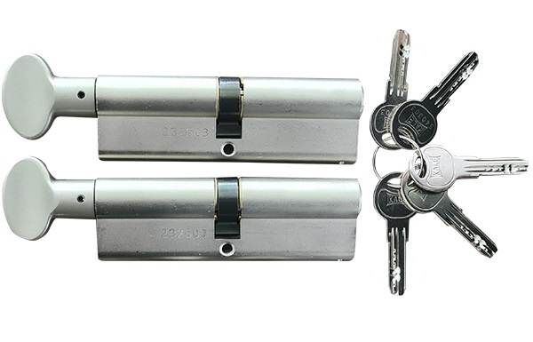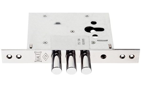 Двері обладнані наступними замками: Верхнім циліндровим замком Kale 257 турецького виробництва. Діаметр ригеля замка – 16 мм, виліт ригеля – 34 мм. Та нижнім циліндровим замком Kale 252, який має три ригелі діаметром 16 мм, виліт ригелей – 34 мм. Циліндровий механізм Kale 50х50Т, з системою тандем.